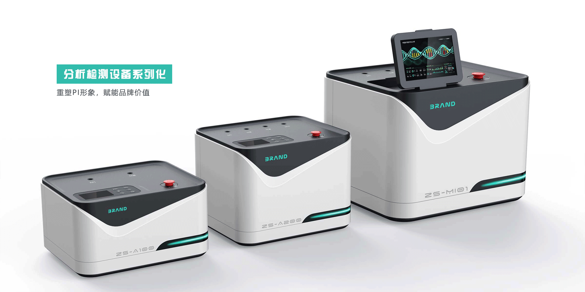 設(shè)計這套分析檢測設(shè)備時,我們從產(chǎn)品PI的角度出發(fā),進(jìn)行設(shè)計研究,提取品牌元素進(jìn)行推敲演化設(shè)計,通過產(chǎn)品面與面之間的關(guān)系,將提取的設(shè)計元素以流暢線條的形式貫穿產(chǎn)品,以常規(guī)工藝實現(xiàn)批量化的良品加工,達(dá)到從設(shè)計角度提升品牌形象的目的。